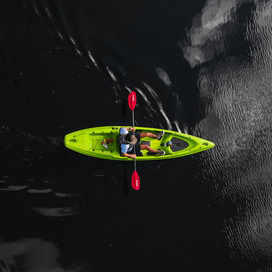 Redesigned, stronger blade. The blade shape provides a smoother forward stroke with fewer chances for flutter, a stiffer feel, and quieter entry and exit. The upgraded fiberglass + nylon blade material is stronger (meaning less flex) and thicker, making it more durable and robust long-term. Fiberglass-reinforced nylon blades are designed for forgiveness and just the right amount of flex, keeping the kayak moving efficiently even with extra gear slowing you down. 102.5 sq. inch blade is the ideal size for quick boat maneuverability, while the sharp dihedral provides a silky-smooth forward stroke with zero tolerance for fluttering, preserving your energy for longer paddling trips. The traditional “oversized” blade design provides better horsepower and control, most commonly associated with high-angle forward strokes and those doing flatwater kayaking, packrafting, racing, and kayak fishing. 100% fiberglass shaft is durable and strong, yet lighter than commodity aluminum, so it will hold up in the most uncertain of conditions while not draining all your energy. Fiberglass is also valued for being warm, plus flexible and forgiving when compared to aluminum. The shaft is ovalized where the hands go for more comfort and control, and to limit the chances for blisters. Snap-button ferrule is fixed length, plus tight fitting, secure, and long-lasting. No wobbling or inefficiencies like commodity systems. It’s not as technical as some modern ferrule systems, but one of the more robust options. Comes with 3-hole for adjustable feather angles of 0° or 60°, left or right hand control. Carbon ferrule insert is light, tight, and right for the long haul. This is a sizable upgrade over plastic or glass ferrule inserts. Two new head-turning colors that make a real statement on the water: Sunset Red, the ideal companion for an evening paddle trip, and the shot of life that is Electric Green. Proudly hand-built in Osceola, Wisconsin, USA, by a team of paddlers and outdoor enthusiasts.