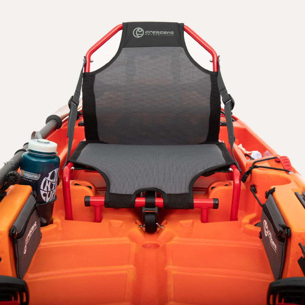 The cockpit on the LiteTackle II is open and clean with an extra rigid deck providing a solid standing platform. Flush-mounted YakAttack GearTracs, adjustable foot tracks, bungee paddle parks, and stash pockets come standard. The cockpit floor has a 2mm recess for our pad kit upgrade. Dual cupholders with bungees can accommodate all standard beverage sizes and stash trays are perfect for easily storing your shades, sunscreen, and tackle. Adjustable Height Seating offers ample tackle/gear storage under the seat. Our fully adjustable seats are hand-made in the Southeastern U.S. and feature a padded seat bottom. The new single-strap compression system keeps the seat extra secure and switching between the high and low positions a breeze.