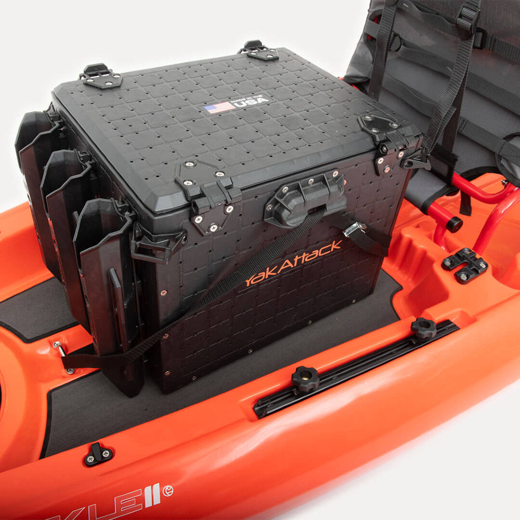 The passthrough rear tankwell in the LiteTackle II doesn’t compromise on storage fitting all popular coolers, dry bags, and YakAttack BlackPaks. Dual mighty mounts add additional rigging options. We integrated our new Tankwell Cam Strap Storage System (patent pending), the quickest and most efficient way to secure gear. YakAttack GearTracs with adjustable bungees offer additional storage and rigging options. The rear deck plate doubles the internal storage and hull access—perfect for mounting a Power Pole or Torqeedo to the stern of your LiteTackle II.