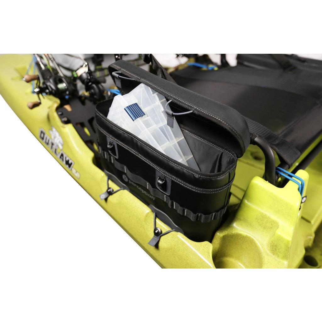The Outlaw also integrates industry-firsts including a stowaway seat for complete deck walkability and space for up to a 35L cooler. Two "double-barrel" rod holders offer the ultimate multi-rod setup. Elevated seating allows for the highest fishing vantage ever in a kayak, and the ergonomic and comfortable seat extends time on the water and transition easily from sitting to a standing position. With room to accessorize and several unique attachment points, rigging has never been easier. Add the Perception Kayaks Saddle Bags (sold separately) and this kayak is a horse of a different color.