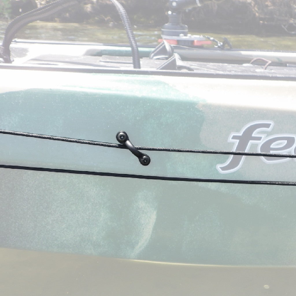 The Deluxe Anchor Trolley will help you stop being a victim of changing winds and currents while fishing in the anchored position. The YakGear Deluxe Anchor Trolley Kit allows deployment of any anchor, drift chute, or stake out pole before judging the current and wind while still remaining in a favorable fishing position. Without a trolley you are limited to anchoring to where you can reach, causing your boat to swing back and forth. Mounted just off of one gunwale of any kayak or canoe, the deluxe trolley kit uses a nylon pulley system to select a desirable position anywhere from bow to stern, then maintains the positioning through the use of a 2-5/16 inch mini zig zag cleat. The deluxe system uses Harken pulleys to seamlessly pass trolley rope from bow to stern, without the standard rubbing of rope along slightly less smooth pad eyes. The mounted pulleys are raised off of the boat enough to eliminate any unnecessary rubbing or scratching of the boat. As always, this complete kit comes with all stainless steel installation hardware, installation instructions, and rigging tips from YakGear. Waterproof silicone and anchor recommended, but not included.